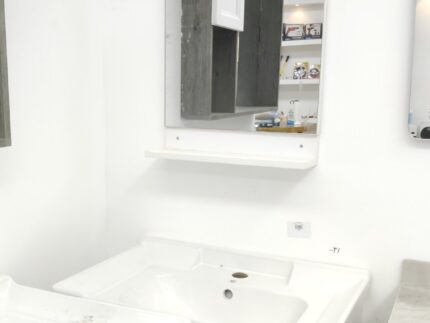مغسلة حجر ابيض ذهبي مرخم + إضاءة امامية