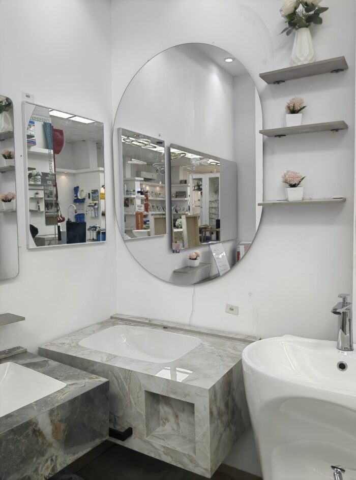 مغسلة دولاب رخام رصاصي فاتح مع اضاءة مقاس 80 موديل العمودي